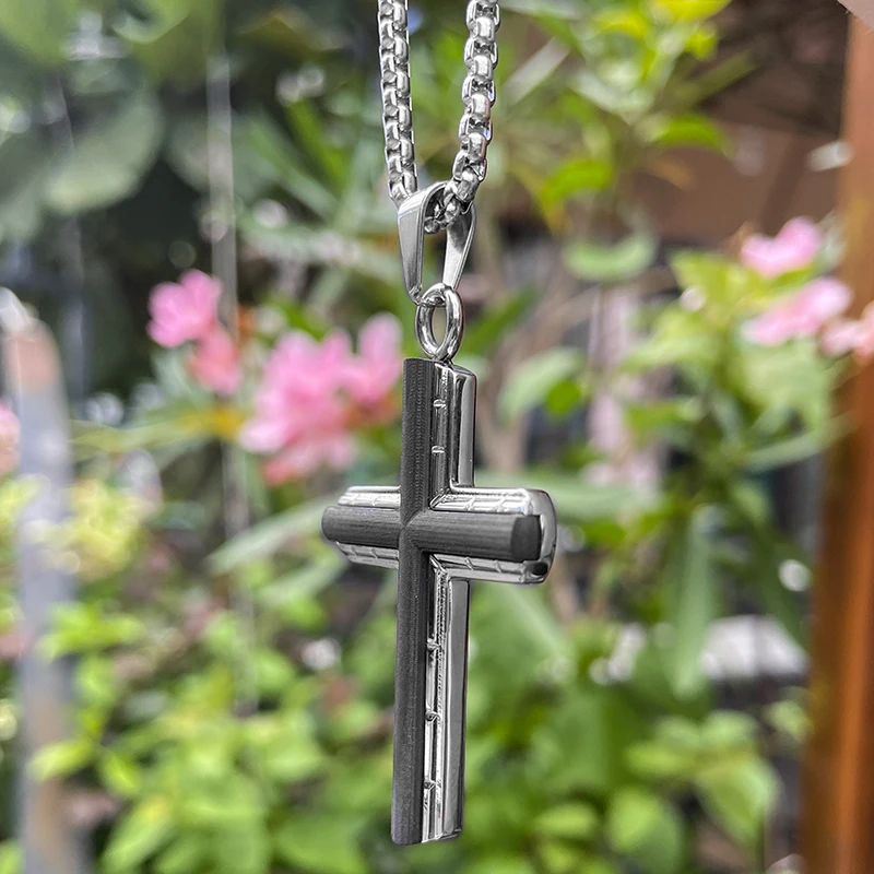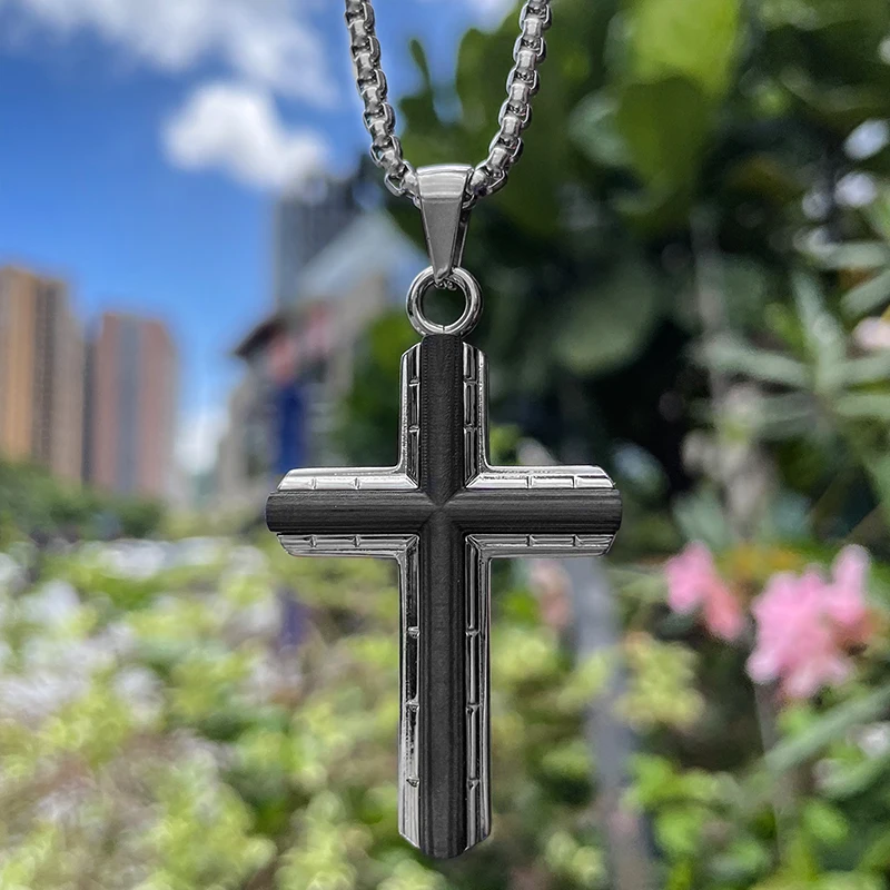 Fashionable TIZTI Pendant Stainless Steel in Black Carbon Fiber Cross Necklace Pendant for Men